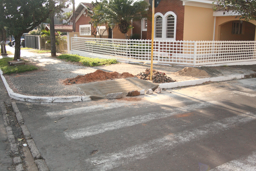 Foto: Rampa de acessibilidade sendo construída em esquina da avenida Pe. Pio Corso (AssImp/Divulgação)