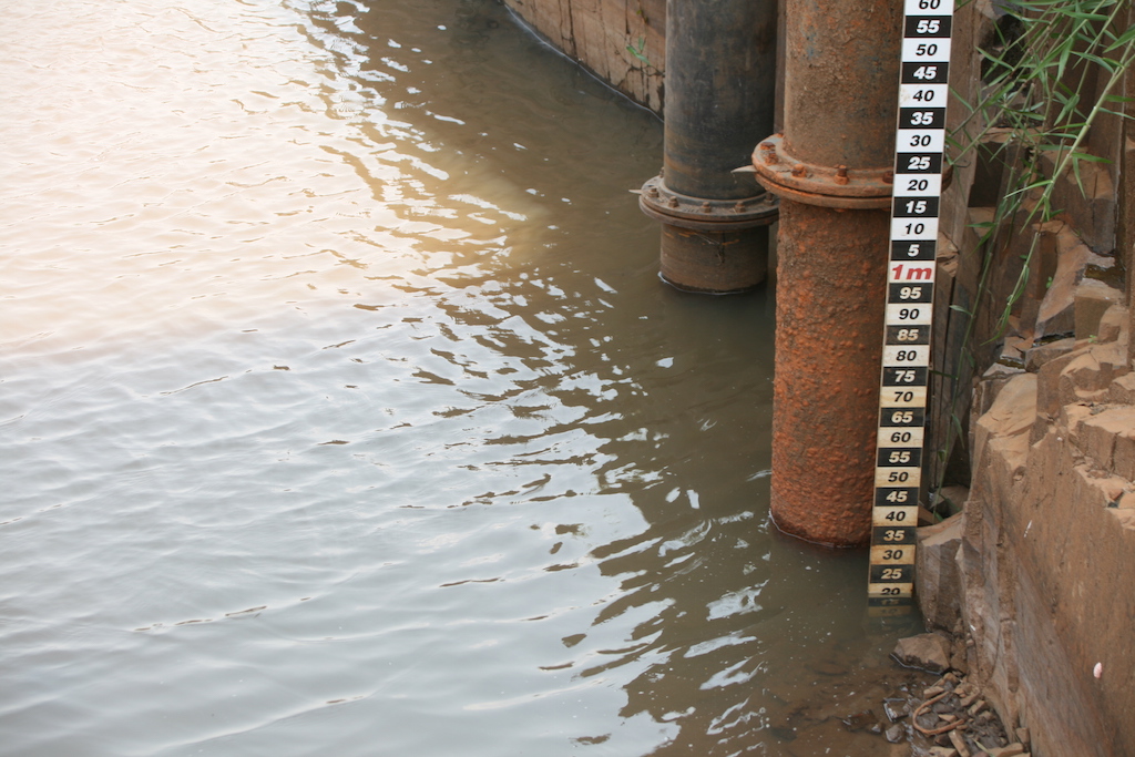 FOTO 1: Régua indica o volume baixo da represa Passa Quatro (AssImp/Divulgação)