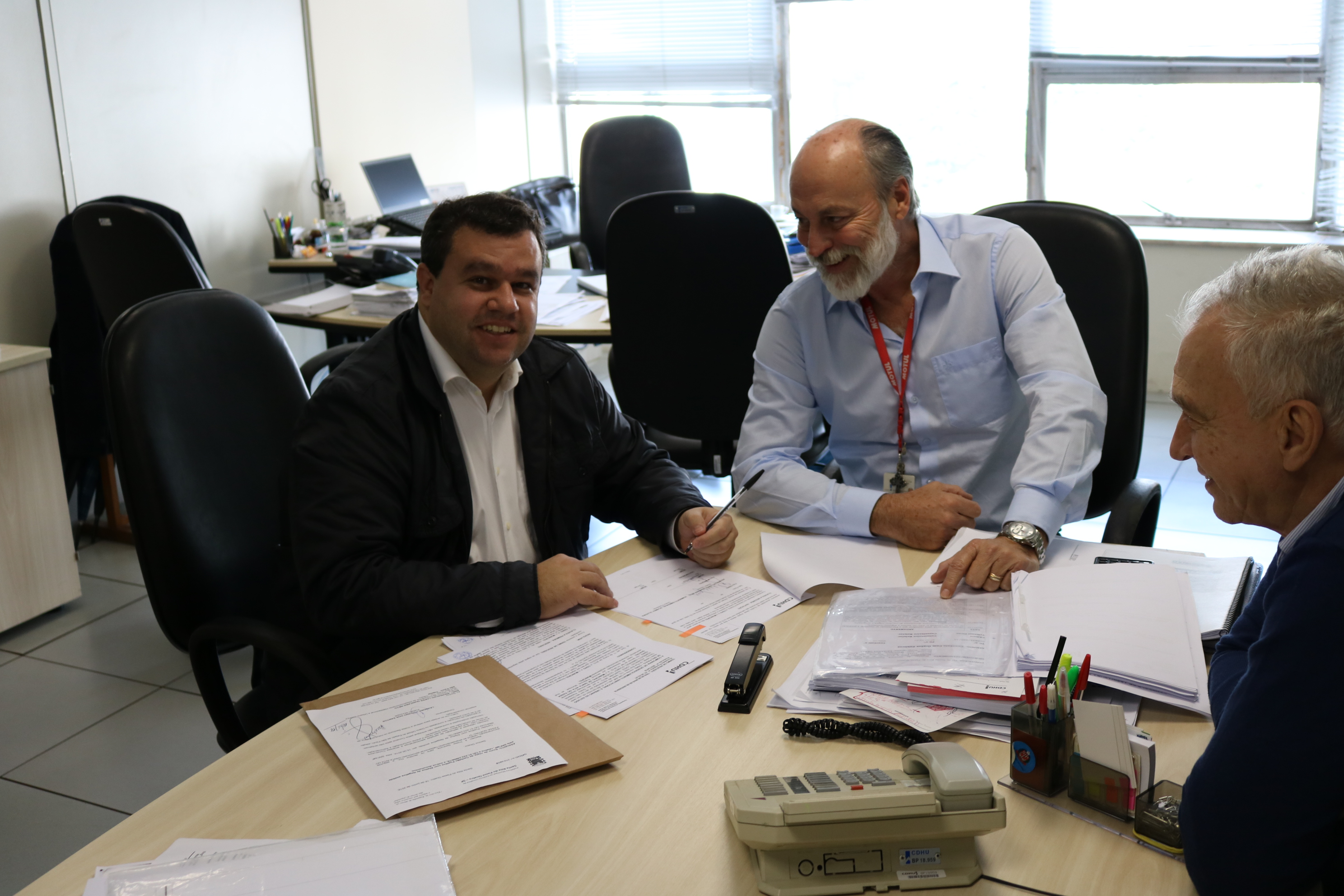 No último dia 18 de junho, segunda-feira, o prefeito Leandro Luciano dos Santos esteve na Secretaria de Habitação, em São Paulo, para assinatura da rescisão amigável de contrato, ação necessária para que a CDHU pudesse abrir a nova licitação.