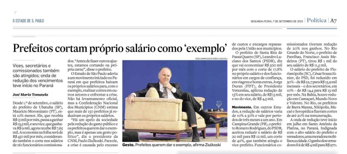 “Orgulhoso de ter oportunidade de ser prefeito de uma das mais belas cidades do Brasil no pior momento político, com a maior crise financeira da história do país e ainda com mais 2 anos e meio de mandato, poder chegar em casa todos os dias e ouvir da pessoa que é meu espelho (meu pai): ‘parabéns, filho, você honrou o nome da nossa família, não só pelas obras, mas sim pelo legado de caráter, honestidade e dignidade, para as próximas gerações de políticos’”, disse o prefeito. “Outro fato é de ter tido a total consciência que para o futuro do desenvolvimento da cidade, não poderia deixar de tomar todas as decisões gestoras e nunca ter pensado em situações políticas e beneficiar amigos, mas sim se preocupar com o bem estar da coletividade”, concluiu.