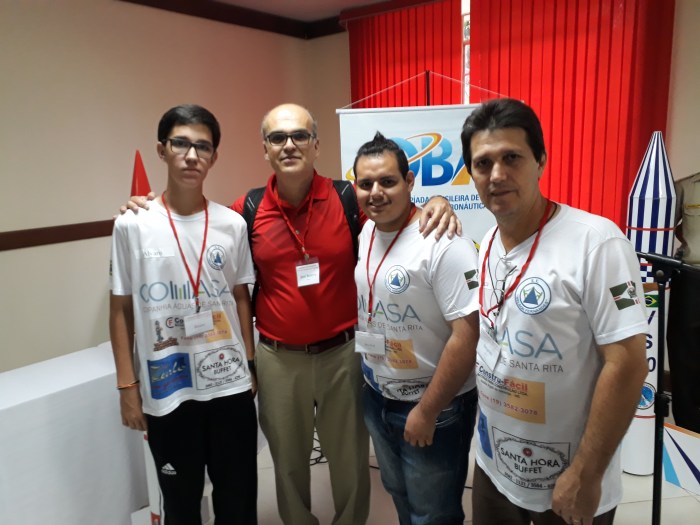 Com muito entusiasmo os Professores Airton Aparecido Pellegrino e Antonio Otavio Pellegrino orientaram e incentivaram desde maio os alunos da E.E. Nelson Fernandes a participarem da MOBFOG (Mostra Brasileira de Foguetes). E o resultado foi gratificante porque a equipe campeã na Escola foi convidada a participar da XV Jornada de Foguetes. Formada pelos alunos Álvaro Leitão Pellegrino (1º A) e André Luís Juliate de Jesus (3º A) e acompanhados pelo professor Tuca a equipe esteve em Barra do Piraí-RJ de 22/10 a 25/10. O evento reuniu estudantes do Ensino Médio de todo Brasil que participaram de palestras, planetário e lançamentos de foguetes. A equipe conquistou os seguintes prêmios: