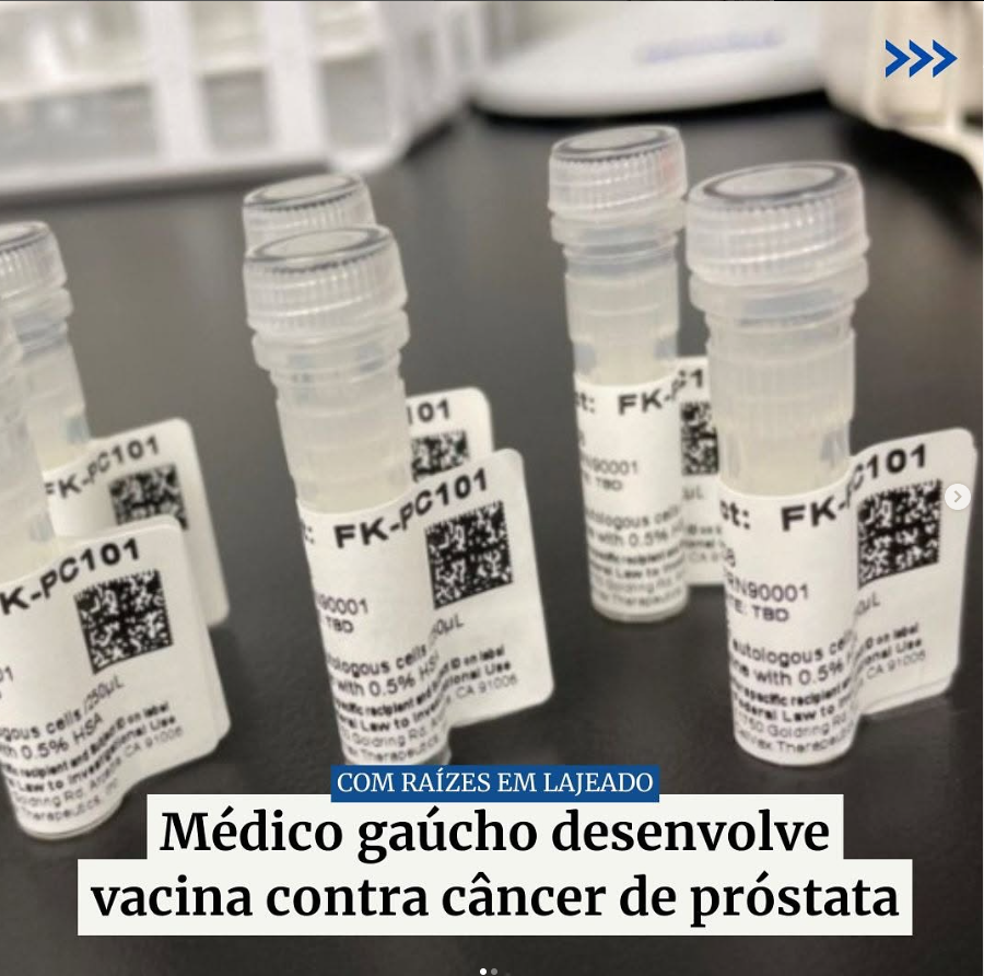 Nesta segunda-feira, 23, um americano recebeu a primeira dose de uma vacina revolucionária contra o câncer de próstata, desenvolvida pelo biotecnologista gaúcho Fernando Kreutz, com raízes em Lajeado. O paciente será monitorado por 22 meses para avaliar a eficácia do tratamento.