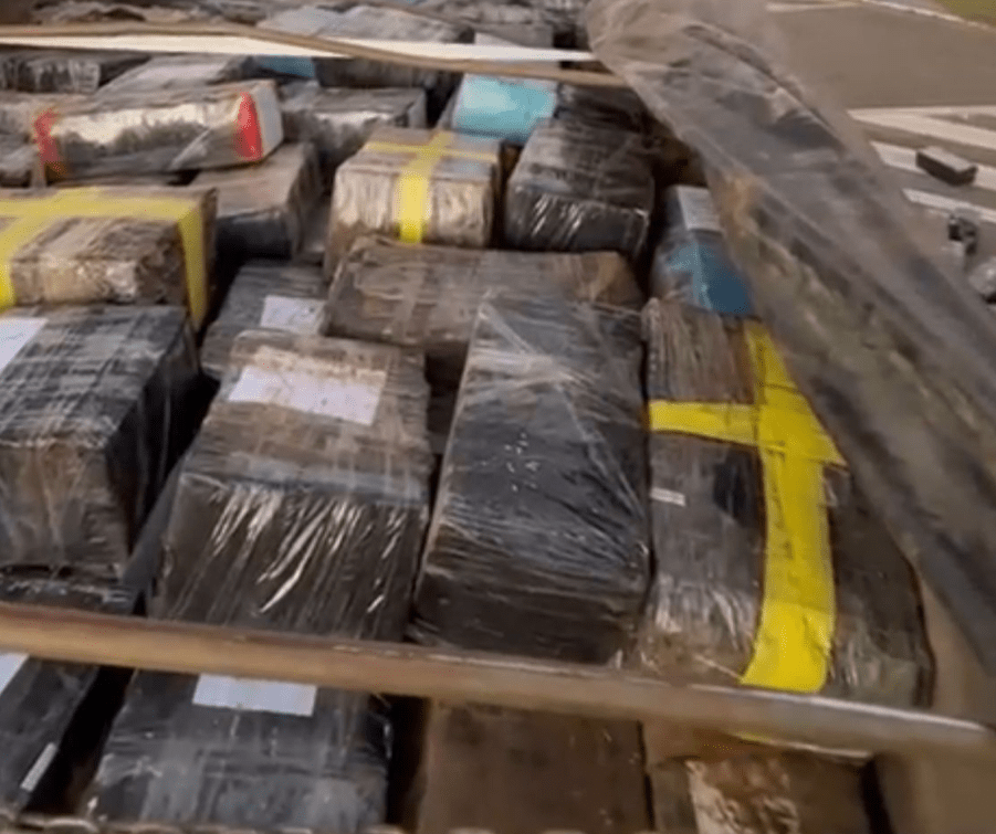 Na vistoria realizada na carroceria, foram encontrados diversos tijolos de entorpecentes, além de medicamentos cuja comercialização é proibida no país.
