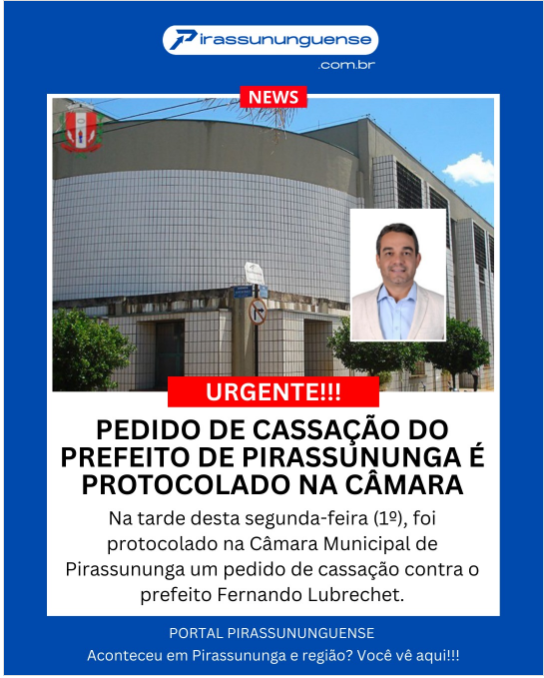Na tarde desta segunda-feira (1º), foi protocolado na Câmara Municipal de Pirassununga um pedido de cassação contra o prefeito Fernando Lubrechet.